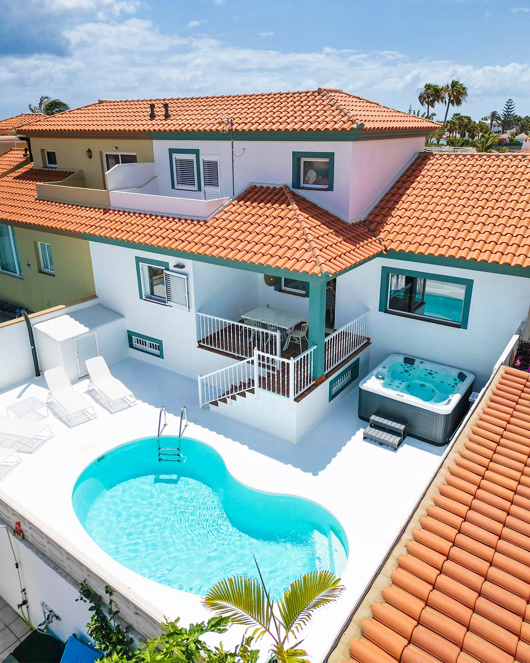 Villa Veaco Beach destaca por su tranquilidad y excelente ubicación, a pocos minutos de la playa y del centro de Corralejo. Con 5 habitaciones, 270 m² y una amplia terraza, ofrece un espacio ideal para grupos grandes o familias, combinando confort, amplitud y detalles de diseño para una estancia placentera.